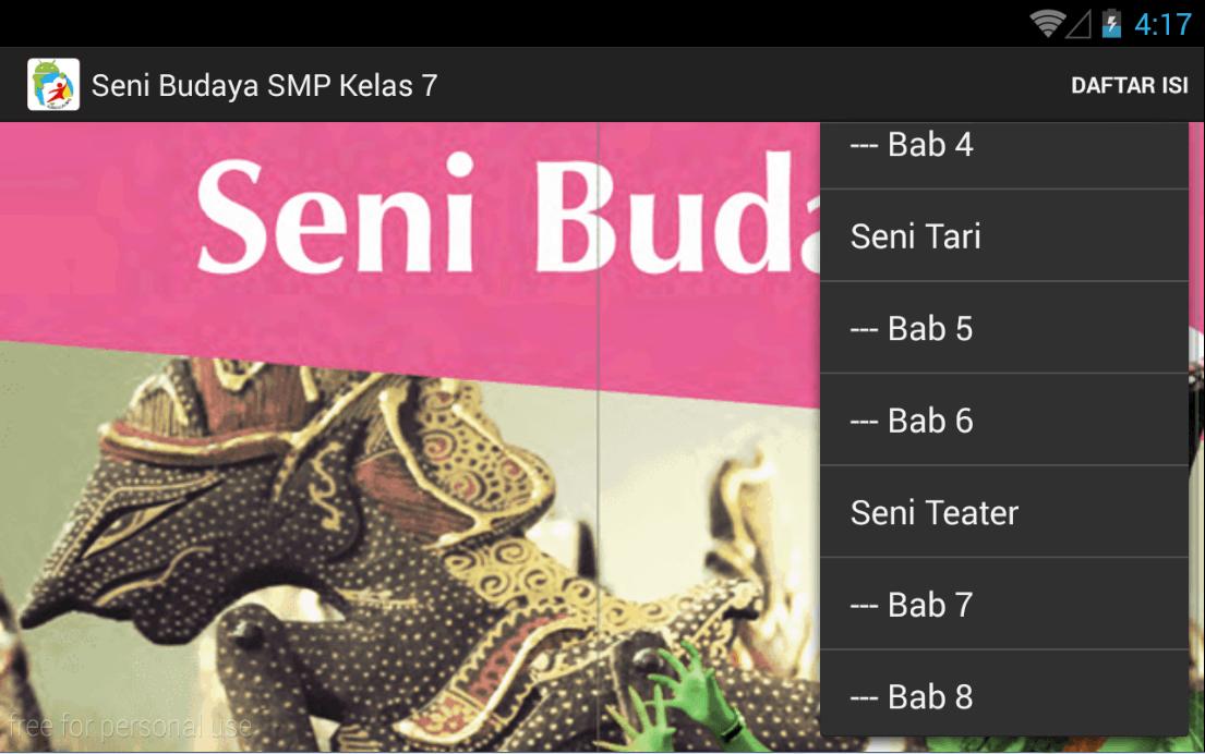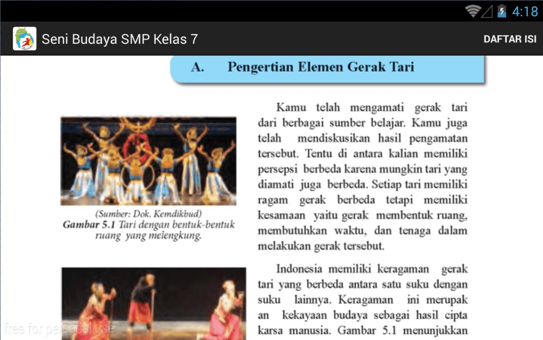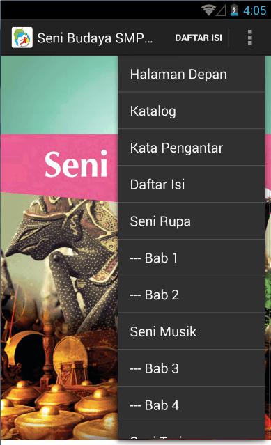 Aplikasi BSE kurikulum 2013 SMP Kelas 7 Pelajaran Seni Budaya merupakan aplikasi buku siswa untuk membantu Pemerintah dalam rangka implementasi Kurikulum 2013.