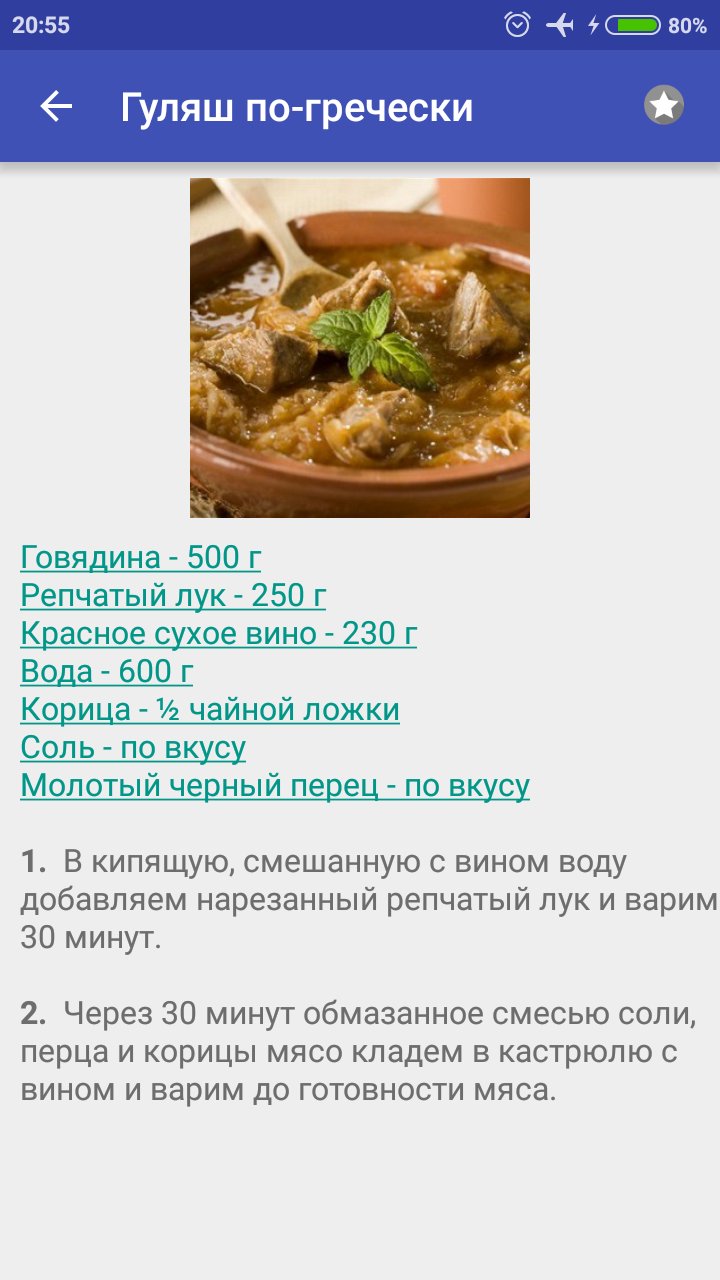 - Ориентировочное время приготовления блюда с картинками;