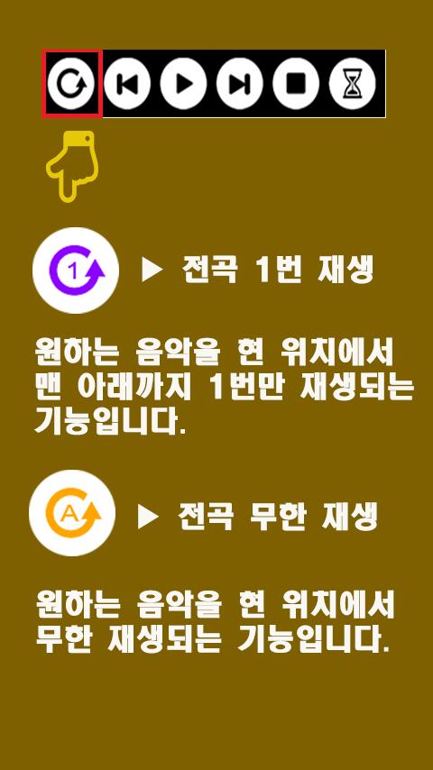 원하는 음악을 현 위치에서 맨 아래까지 1번만 재생되는 기능입니다..
