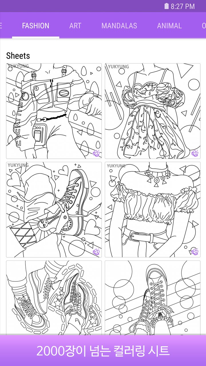 - 꽃과 동물, 패턴과 만다라 등 아름다운 그림들이 있습니다.