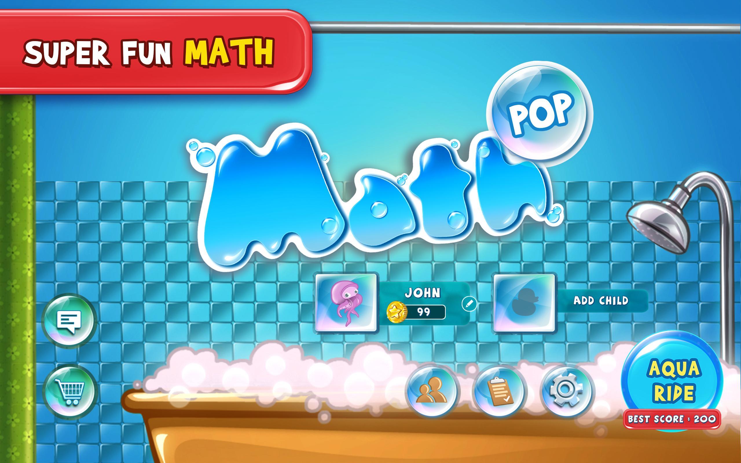 Math Pop - 4th Grade is the most fun and engaging way to practice math problems aligned to the Common Core Standards. Players earn coins by practicing math that they can spend on a super fun game - Aqua ride. The adaptive algorithm makes the app a great learning experience for kids at all learning levels. Parents/Teachers can keep track of progress across all skills.