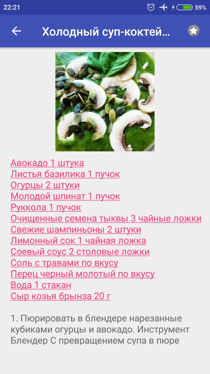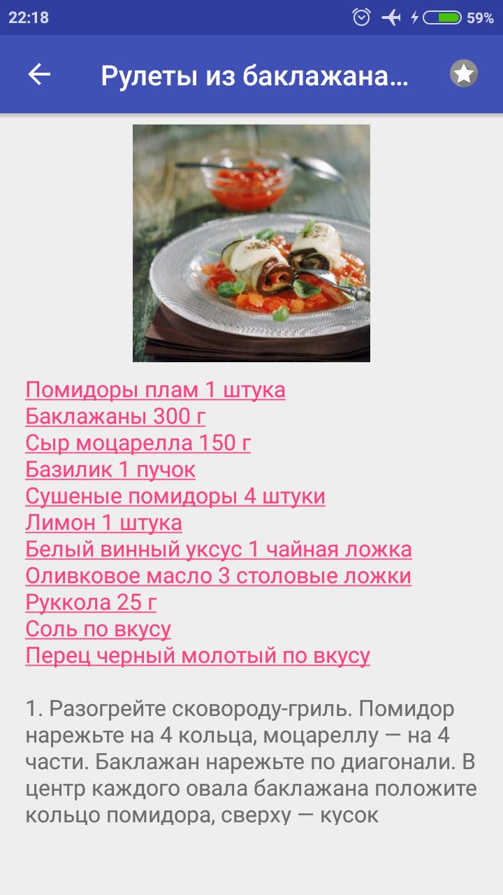 - Ориентировочное время приготовления блюда с картинками;