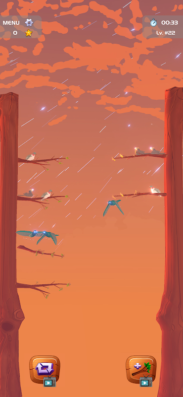 Gerakkan Burung: Ketik pada burung untuk memilihnya, kemudian ketik pada dahan yang anda mahu ia hinggap.