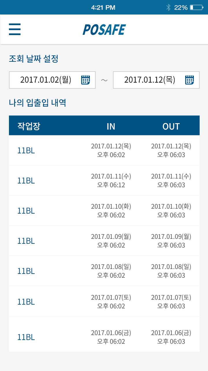 포세이프(POSAFE) - 포스코근태및안전관리