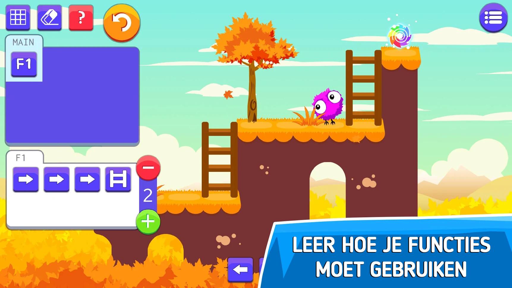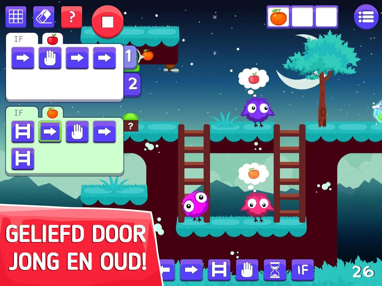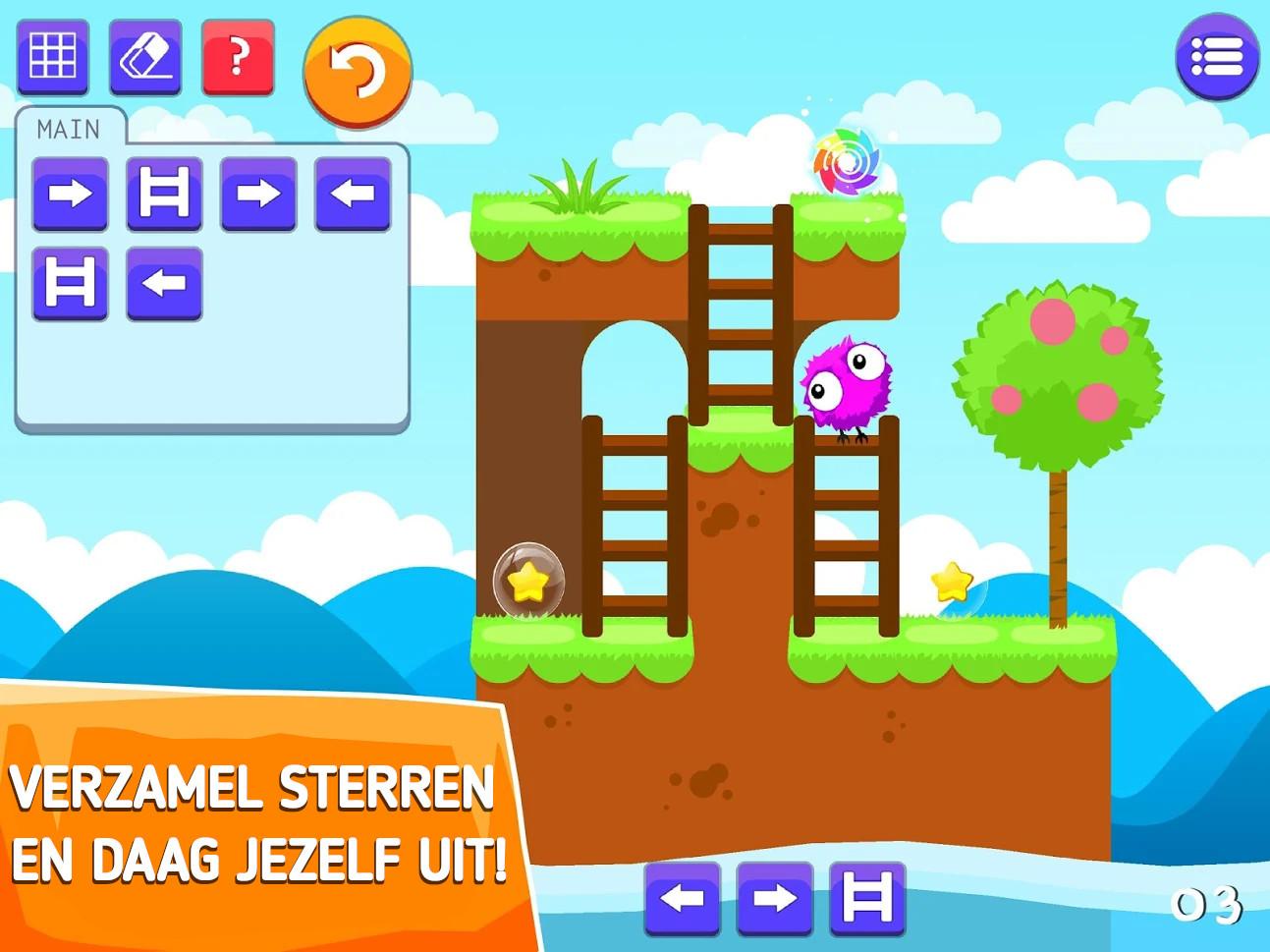Neem de spannende eerste stappen in coderen en programmeren, en stap in de wereld van Aurora - een lieve kleine donsbal die jouw hulp nodig heeft om thuis te komen. Oefen je brein en los lastige ruimtelijke puzzels op met alleen maar programmeer commando's. Gids Aurora door fasscinerende kleurrijke levels. Elk level presenteert een nieuwe en grotere logische uitdaging. Verschillende puzzel elementen zoals vliegende platformen, beweegbare bruggen, ladders en teleporterende deuren worden gradueel geintroduceerd, en maken het 'programmeren' steeds leuker! De grafische elementen van het spel, de geluiden en de humoristische berichtjes, zorgen ervoor dat de aandacht van kinderen niet wegslipt tijjdens het leerproces.