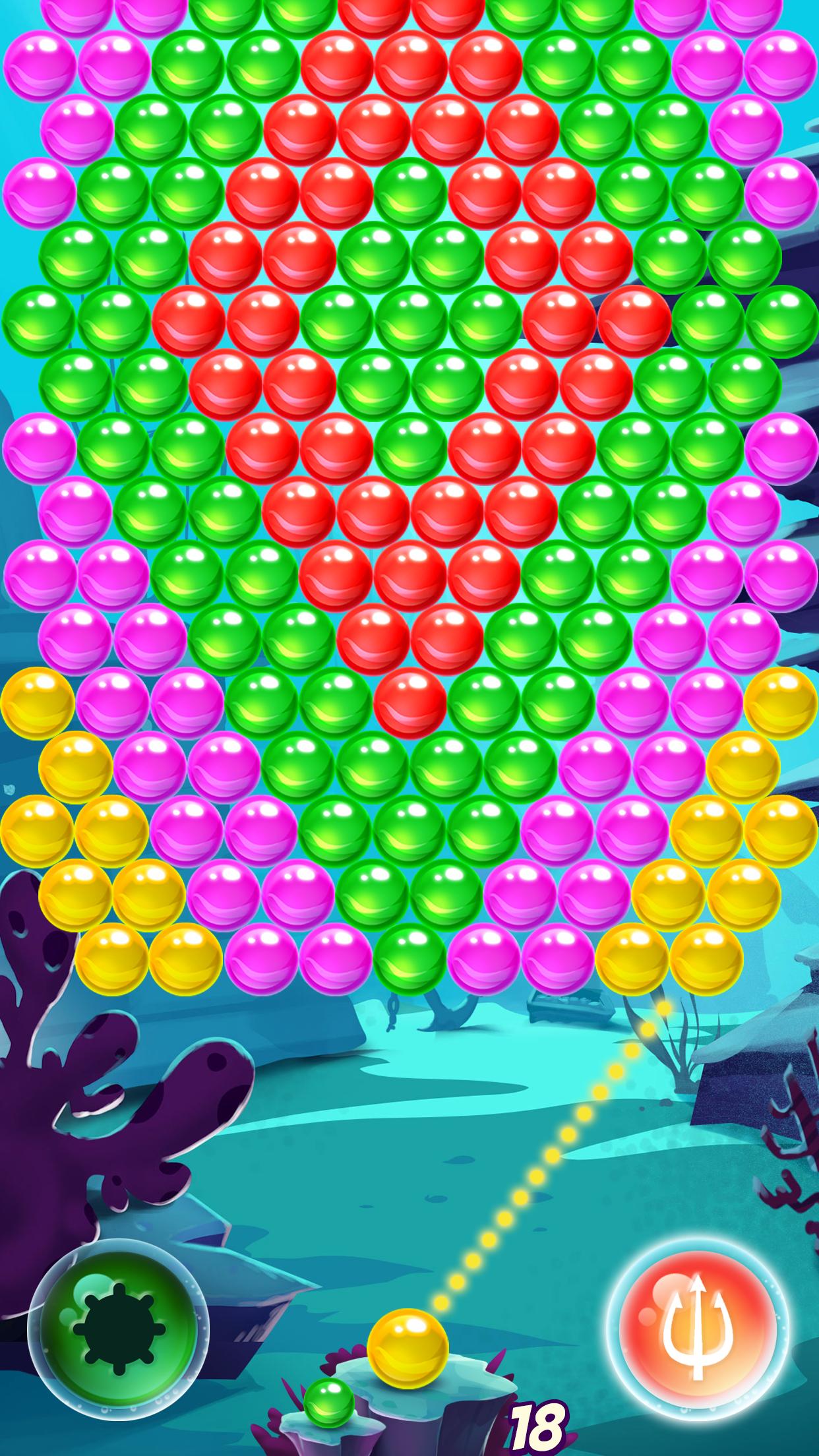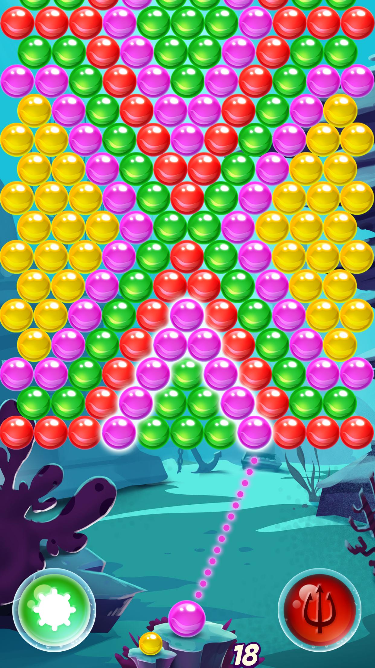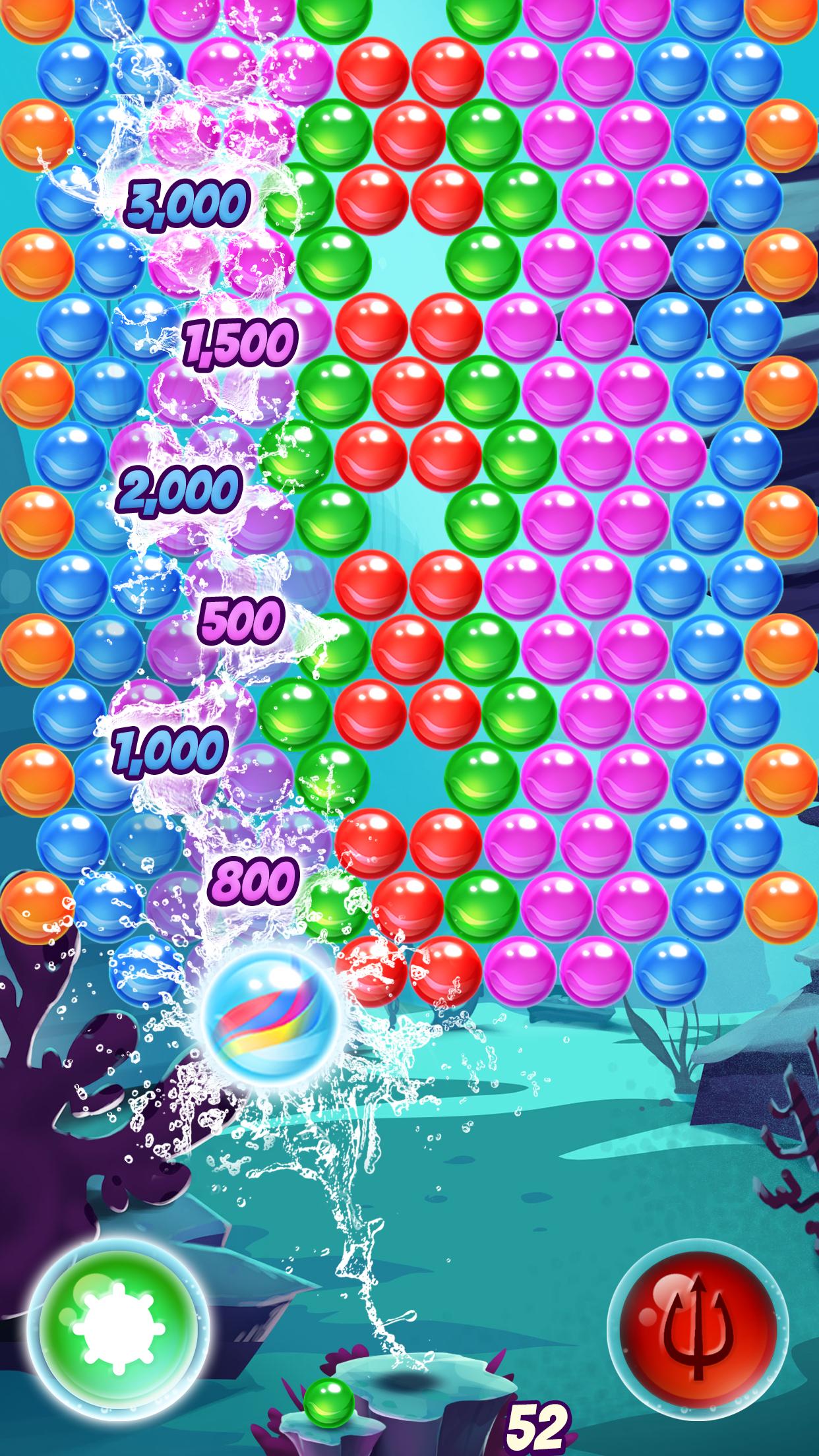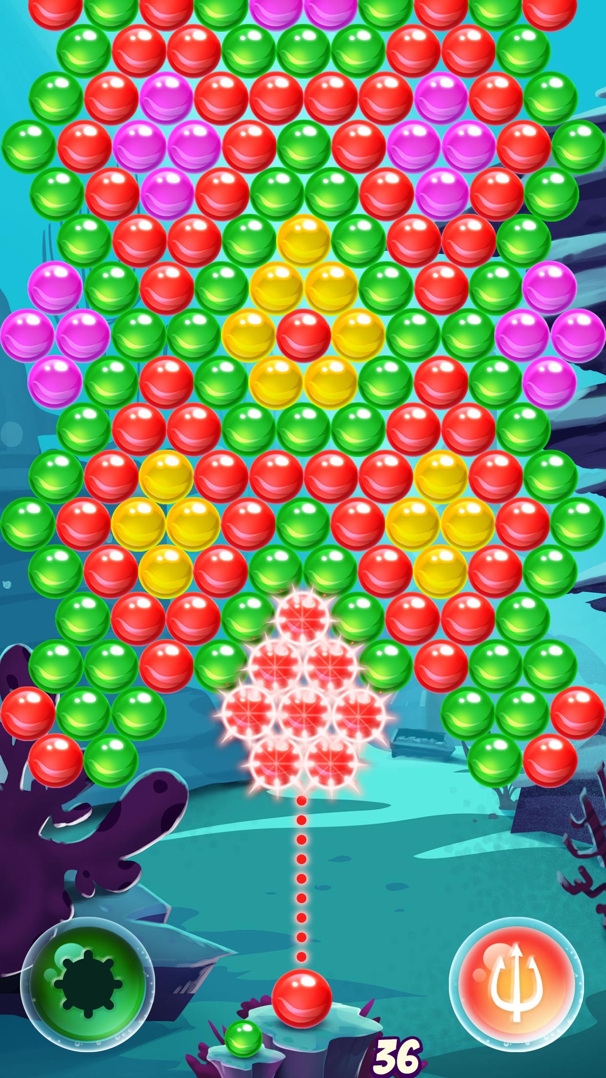 * Drop 10 bubbles or more to get a water-mine bomb that will take out surrounding bubbles. * Pop 7 bubbles in a row to earn a super-trident boost that will remove the bubbles and clear a path.