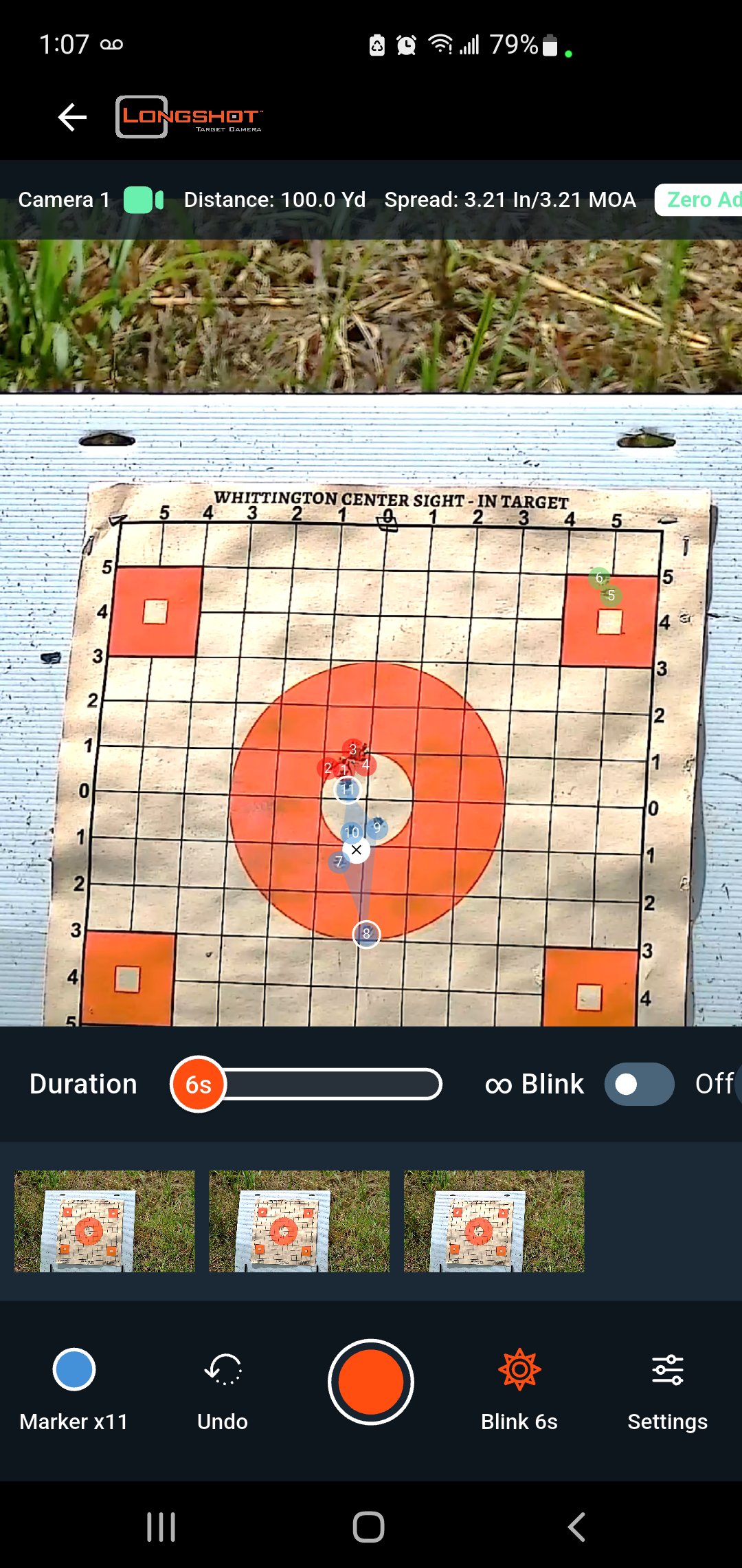 Aplikacja Longshot umożliwia połączenie z dowolnym systemem kamer Longshot lub Targetvision i oglądanie na żywo obrazu z Twojego celu. Możesz powiększać obraz gestami szczypania i przesuwać palcem, aby go przesunąć, aby przyjrzeć się bliżej, korzystać z funkcji Blinker Shot Locator, aby nowe strzały lub grupy migały, ułatwiając ich znalezienie, dotykać miejsc po pociskach, aby umieszczać znaczniki strzałów (w wielu rozmiarach i kolorach, aby śledzić grupy lub różnych strzelców), mierzyć wielkość grupy i uzyskiwać korekty zerowania, robić zrzuty ekranu i nagrywać wideo z sesji strzeleckiej, a nawet oglądać siebie jako nakładkę za pomocą tylnej kamery urządzenia.