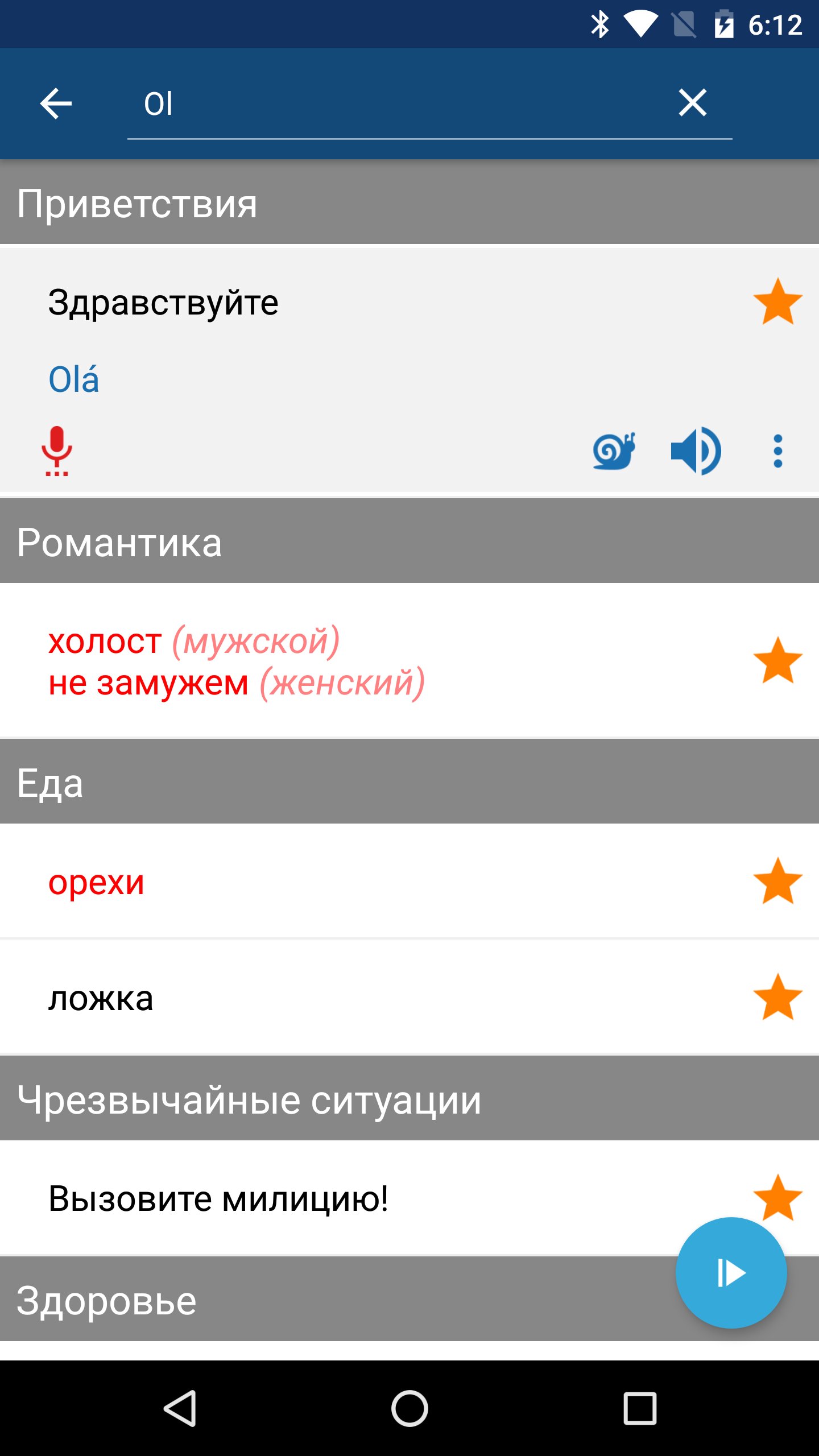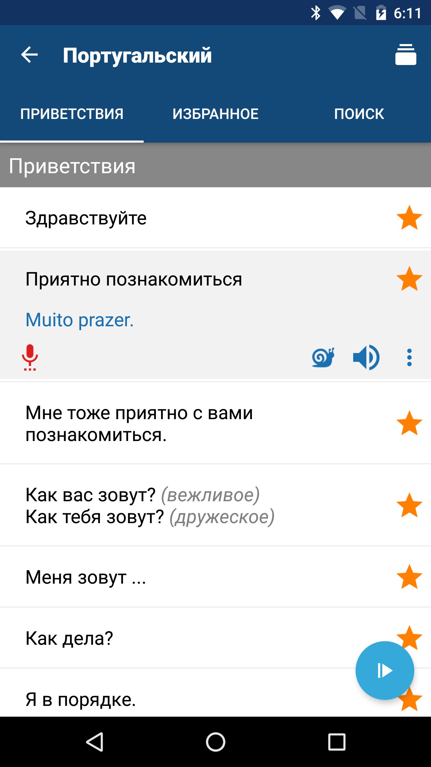• Сохранение и управление фразами в Избранном