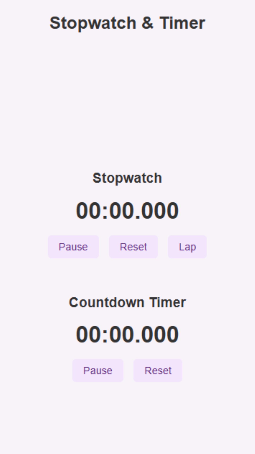 Практичное приложение для секундомера и таймера обратного отсчета с функциями круга и продолжительности.