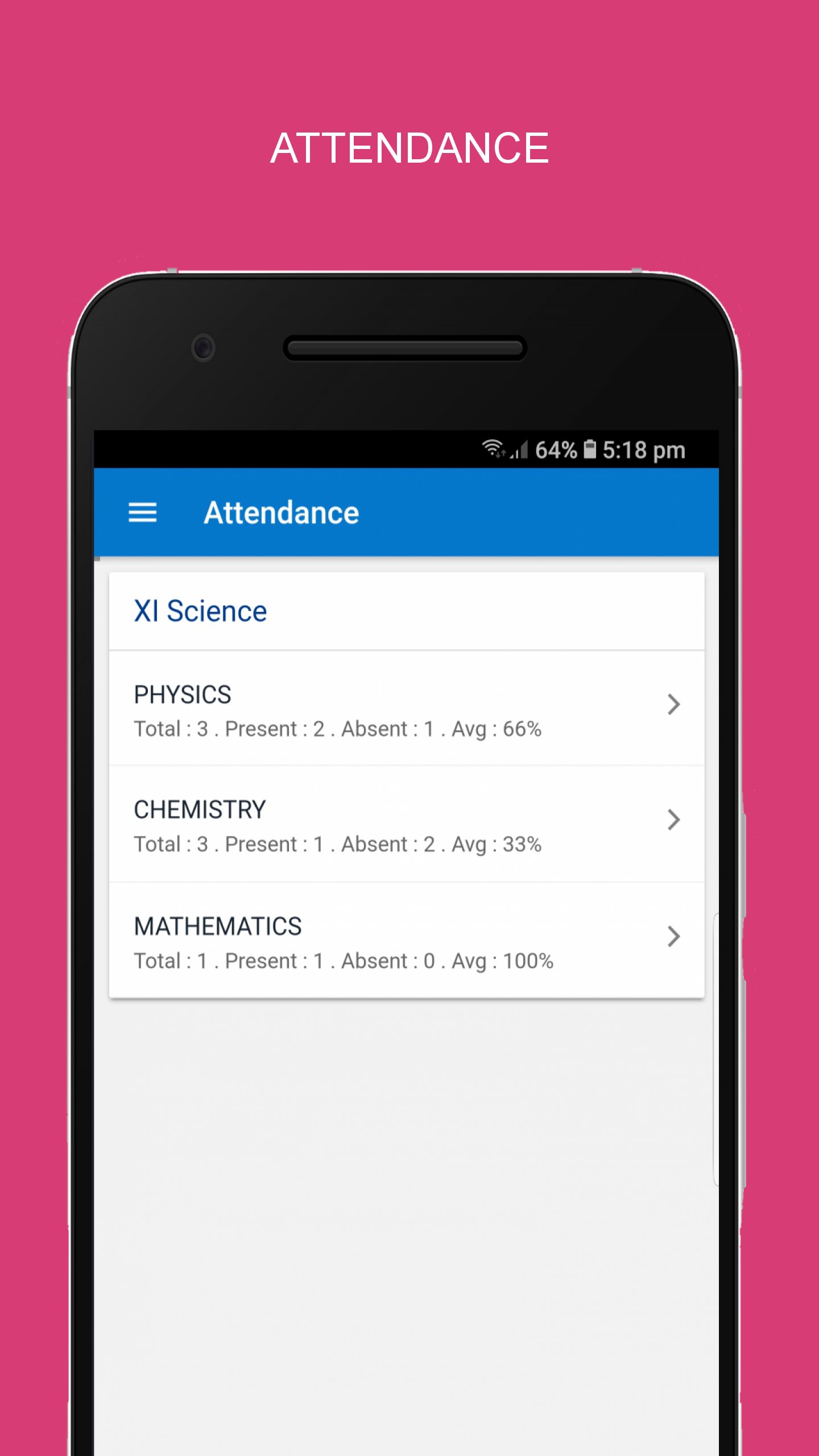 * Track daily attendance in various subjects.
