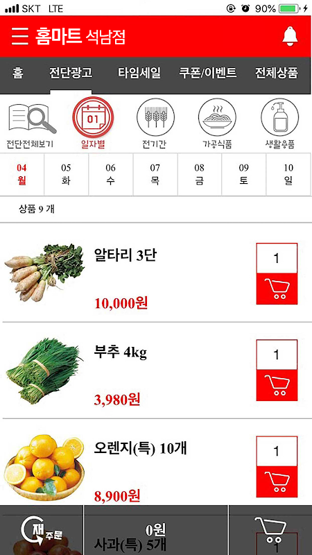 홈마트 석남점에서 진행 중인 행사상품을 기간별, 종류별로 구분하여 알려 드립니다.