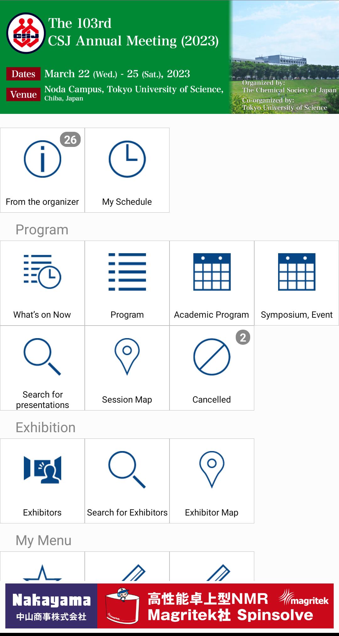 This App is the official App for Electronic Conference Abstract for The 103rd CSJ Annual Meeting.You can view sessions/presentations, create your schedule on the day by registering presentations you will attend, and leave a note to presentations.