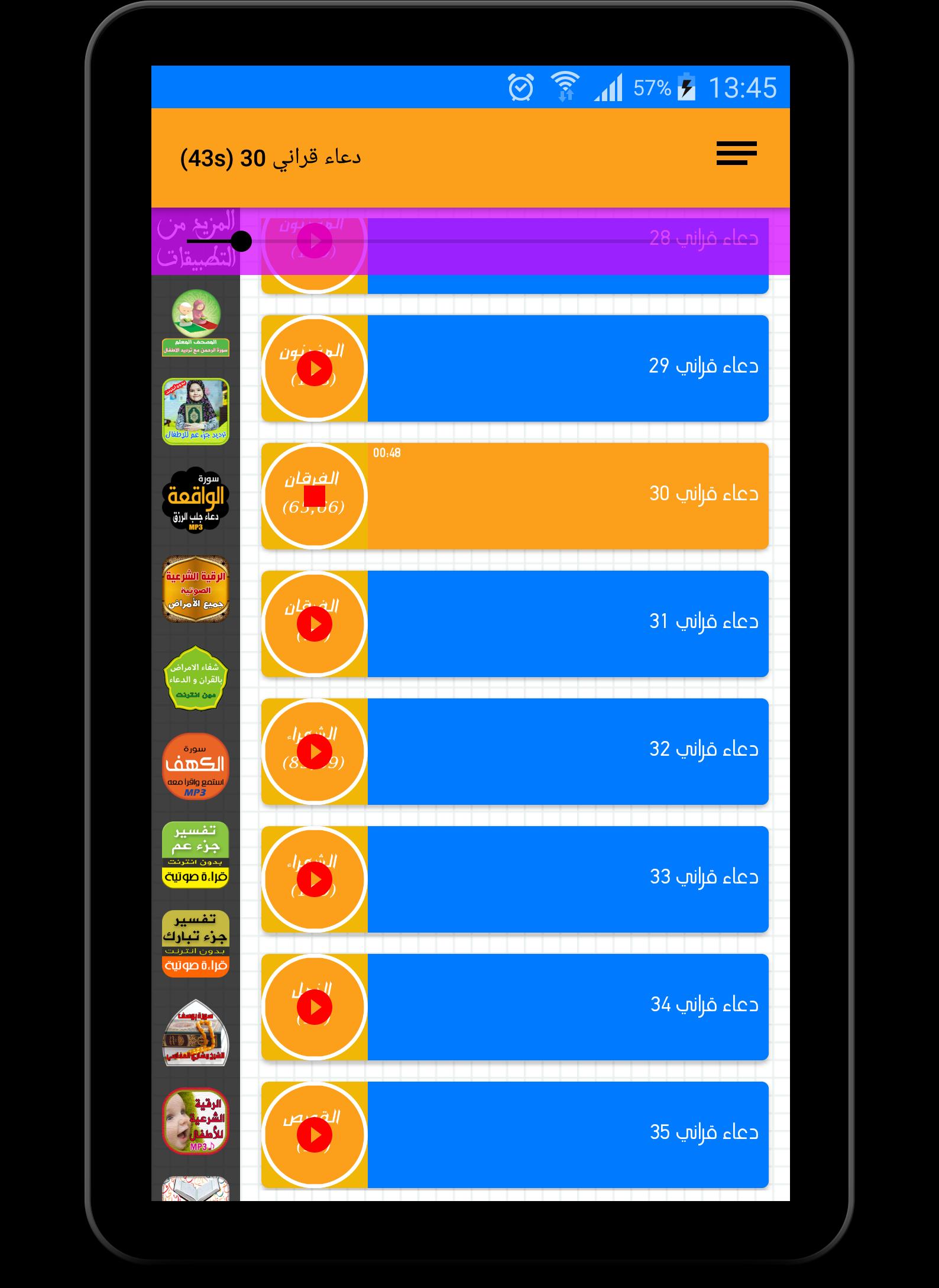 كما ثم إضافة خاصية التشغيل المتتالي ل أدعية القران الكريم 40 rabanna و خاصية التكرار و خاصية العمل على الخلفية ، وإضافة خاصية المشاركة عبر مخاتلف وسائل التواصل الإجتماعي.