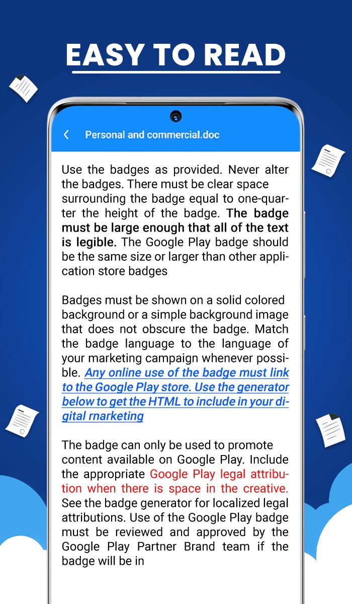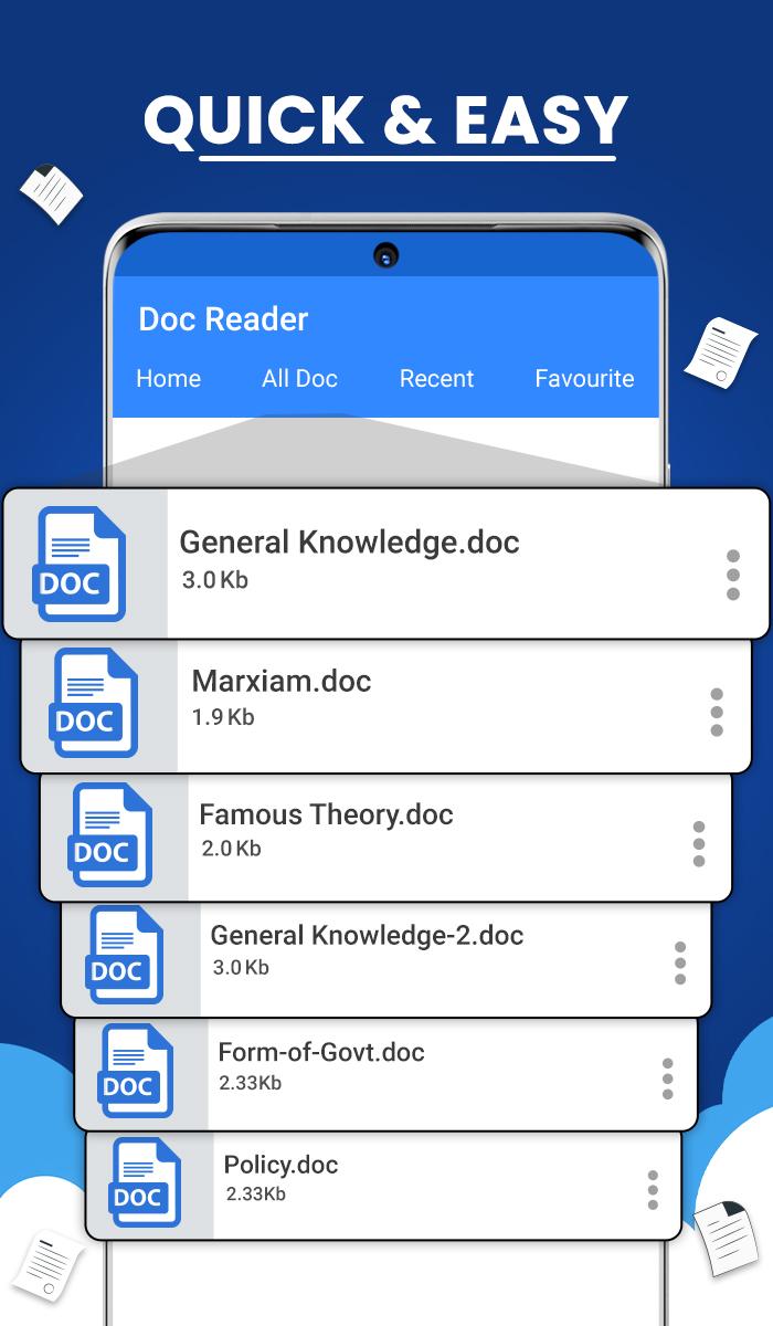 Çok seyahat ediyorsanız ve dizüstü bilgisayarınızı açacak vaktiniz yoksa, herhangi bir belgeyi okumak ve yazmak için tek ihtiyacınız olan cep telefonunuzdur. Ofis işleriniz ve okulunuz zamanında çalışıyor mu? Bu belge okuyucu, telefonunuzdaki tüm belgeleri okumanıza yardımcı olacağı için hayatınızı kolaylaştıracak. Seyahat ediyorsanız, bu belge yöneticisi uygulaması, belgeleri tek bir yerde yönetmenize çok yardımcı olacaktır. Tüm belge okuyucu, belge dosyasını görüntülemek için hızlı ve hızlı bir okuyucudur. Belgeleri pdf, xls, ppt ve word olarak tutmak ve yönetmek için hızlı bir cep tüm belge okuyucu uygulaması. Belge okuyucu, her tür dosyayı okumanıza ve ppt (Powerpoint), excel sayfası, word dosyası, xlxx, Pdf ve diğer dosya biçimleri gibi dosyaları desteklemenize olanak tanır.