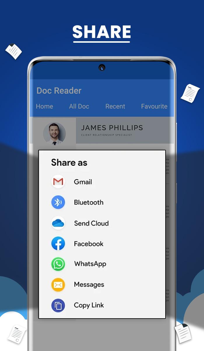 Bu uygulama aracılığıyla tüm belgeleri okuyun. Başka bir ülkeye veya şehre seyahat ediyorsanız, cep telefonunuzdaki herhangi bir belgeyi okumak ve görüntülemek için ihtiyacınız olan tek şey belge okuyucu uygulamasıdır. xls, pdf, word, ppt ve diğerleri gibi her türlü formatı destekler.