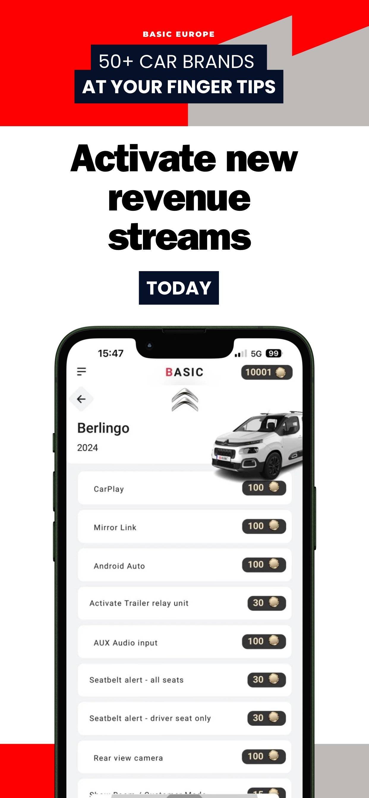 Uygulamanın temeli, aracınızdaki gizli işlevleri etkinleştirmenize veya devre dışı bırakmanıza izin vermektir, örneğin: