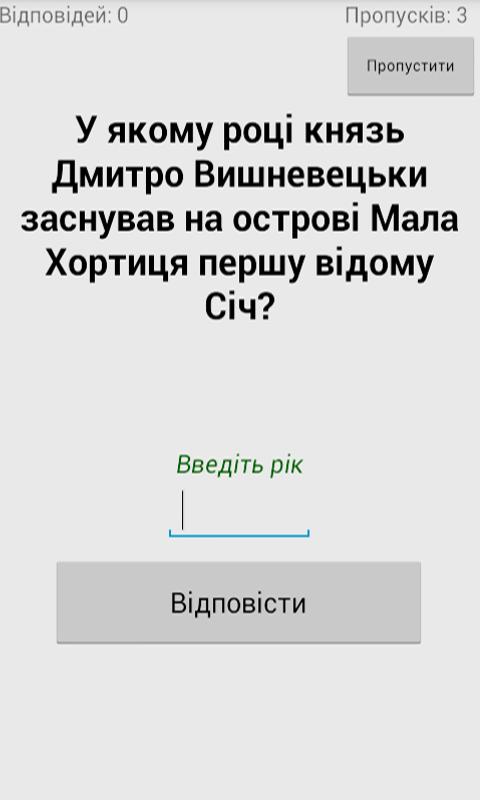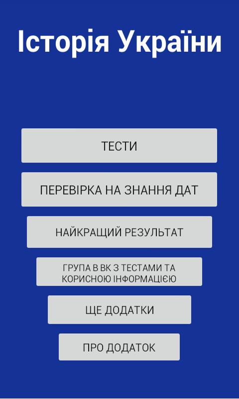 Додаток з тестами та запитаннями для перевірки на знання дат з програми ЗНО 2017 з історії України.