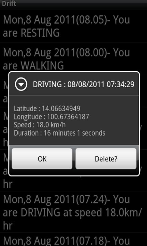 This application monitors user's activity during the day. It classifies user's activity into sleeping (phone is not with user), resting (phone is with user while doing no or minimal activity, walking (user is walking), or driving (user is taking transportion). The activities are logged in the database for later accesses. Application employs information processing of accelerator and GPS sensors. Useful information can be obtained for user's private uses. A number of graphs are provided. Connection to social networks is allowed to share information with friends. Once the application is executed, background service remains for continuously monitoring user's data. Different preferences can be cusomized for best experiences with variety of mobile devices.Last updated on 2016年06月23日