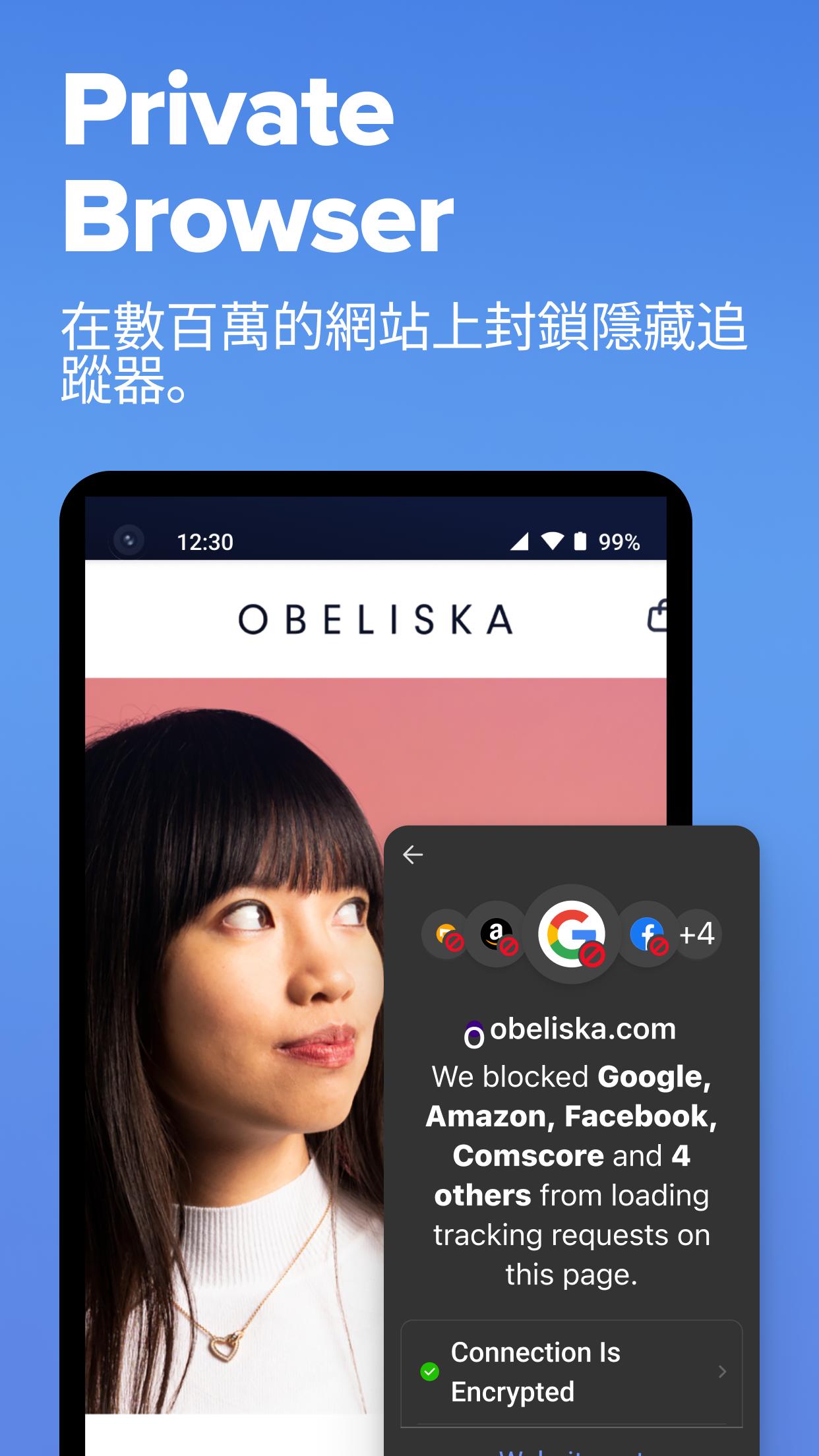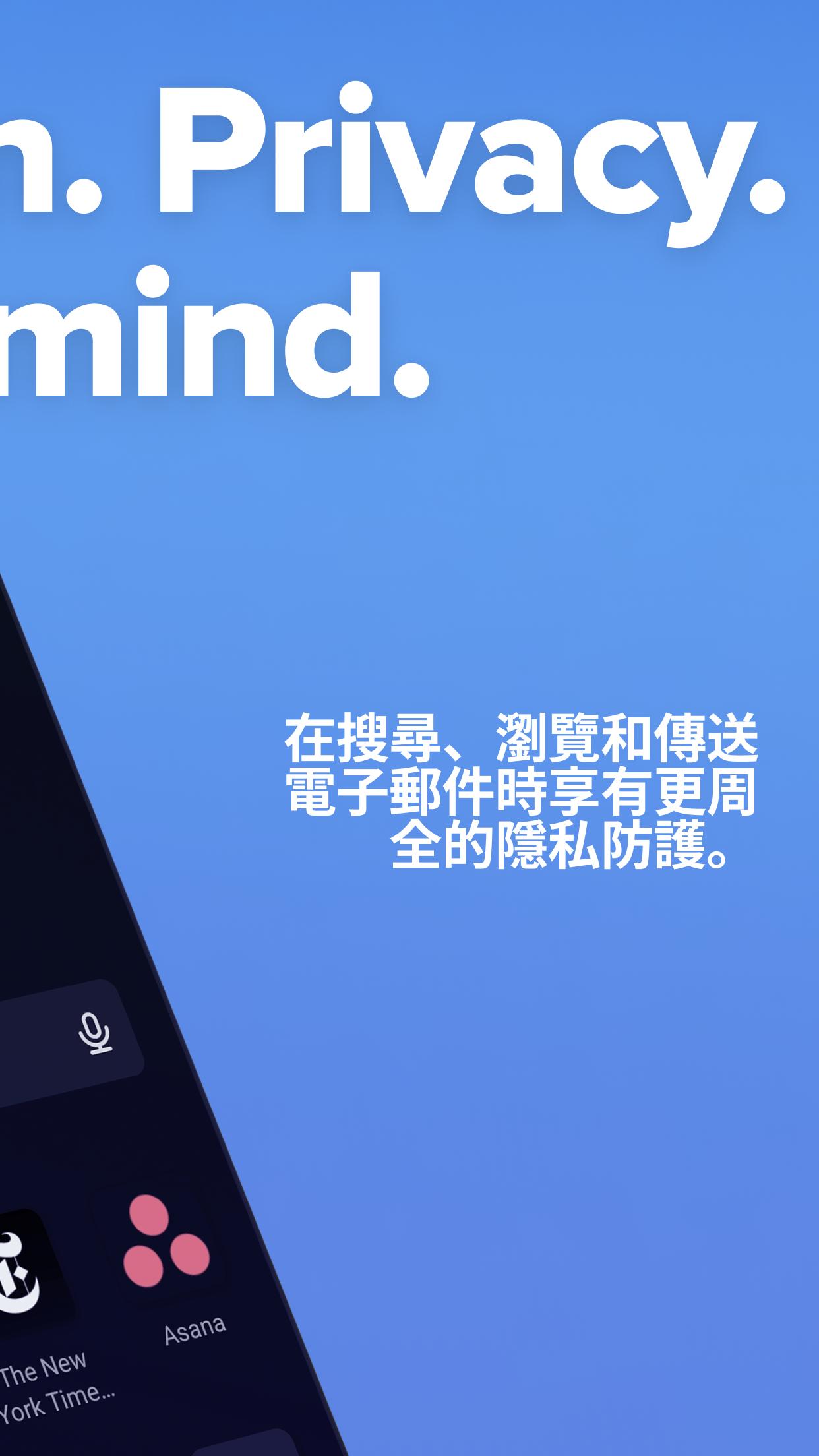 ⚡積極主動地保障你的資料。私密搜尋、網頁瀏覽器、廣告封鎖、VPN 以及其他諸多功能!