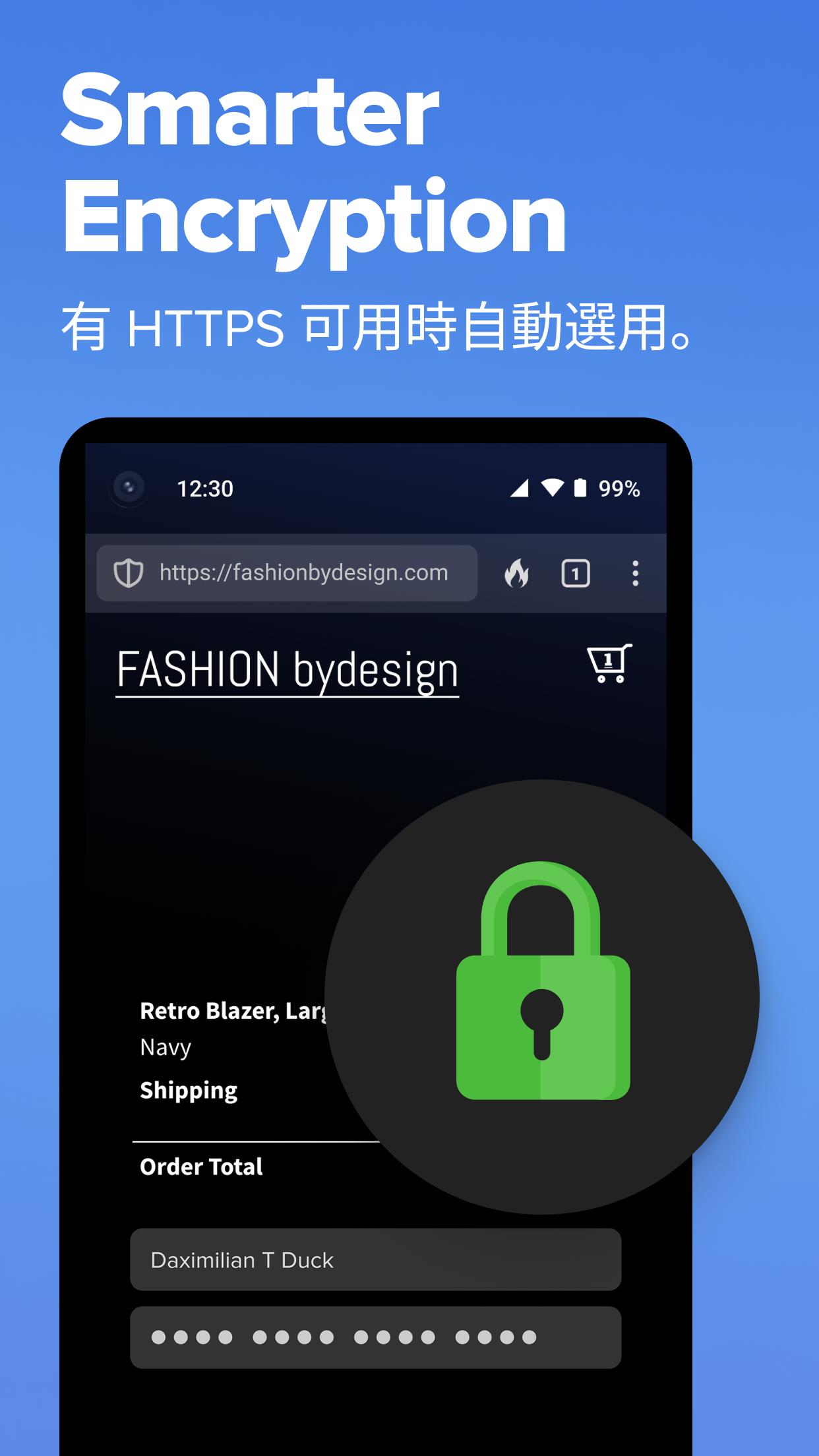 DuckDuckGo Private Search 為內建功能,讓你可以在網路上安心搜尋,不用擔心遭到追蹤。