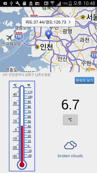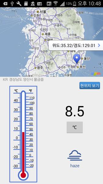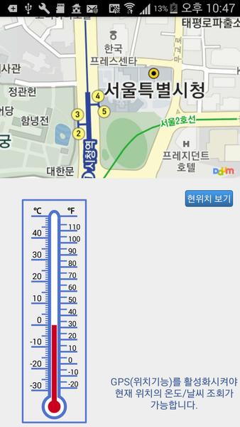 - 提供當前天氣和溫度在韓國各地區的 - 在地圖上顯示您當前的位置 - 溫度所需區域的地圖上的觀
