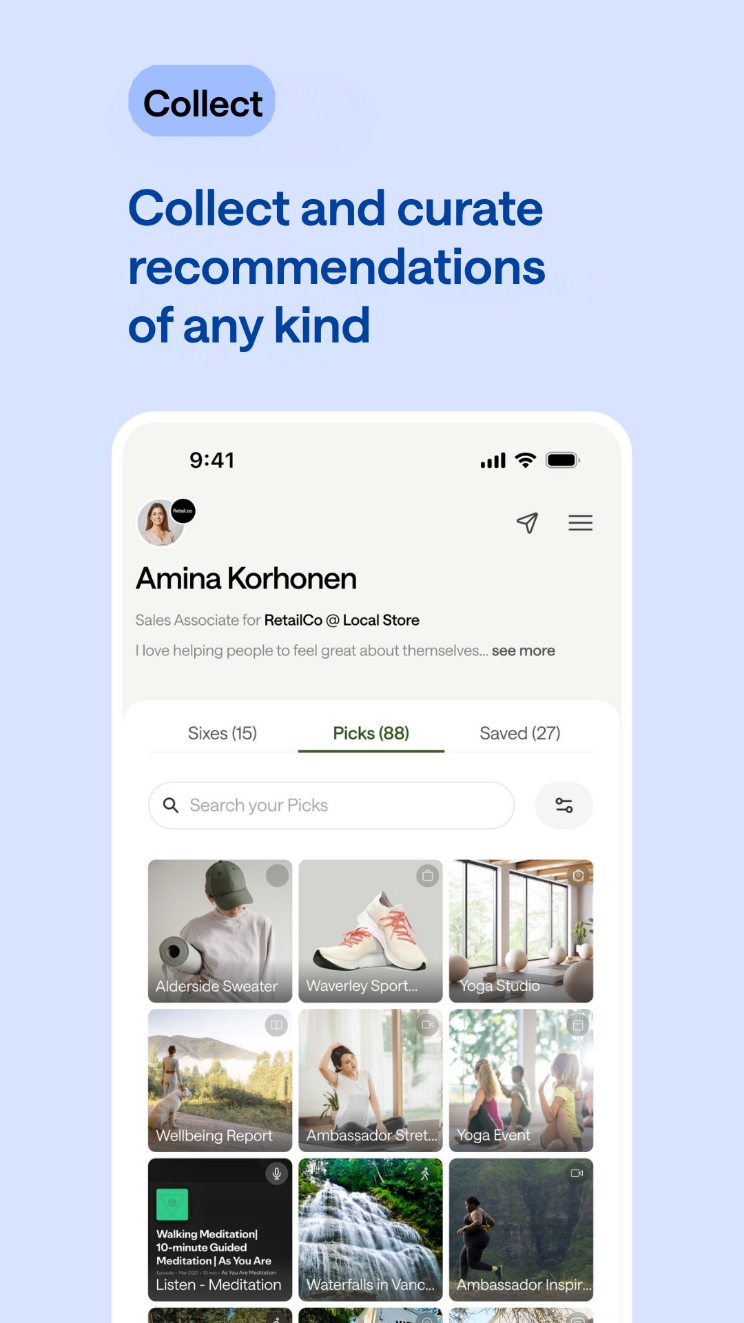 對於企業:我們的解決方案使面向客戶的員工能夠策劃、收集和分享值得信賴的推薦,從而更好地與客戶互動。我們相信,品牌應該激發員工的創造力與客戶建立聯繫,並利用人工智慧來放大這種創造力。
