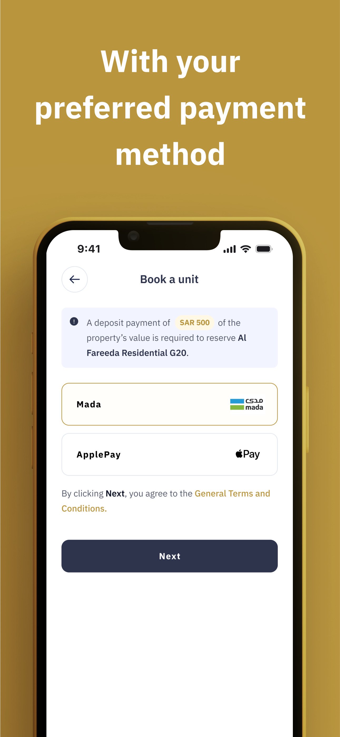 Reserve your dream property and complete your purchase 100% in-app.