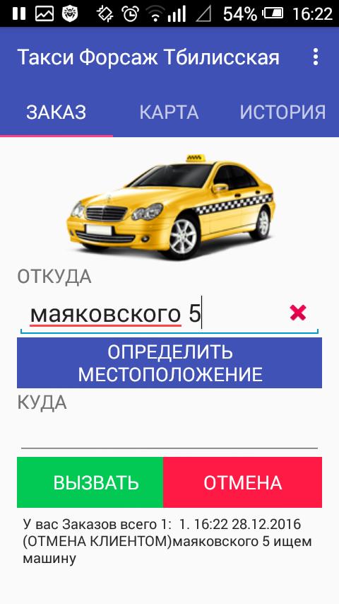 Данное приложение несет основной функционал для вызова такси и отображения состояния заказа, который клиент пожелал сделать в службе такси.Last updated on Dec 23, 2019