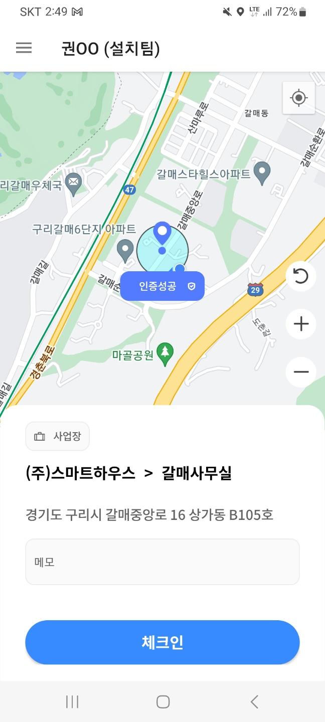 ▶ اگر GPS کی توثیق کامیاب ہے، تو آپ چیک ان/چیک آؤٹ کر سکتے ہیں۔