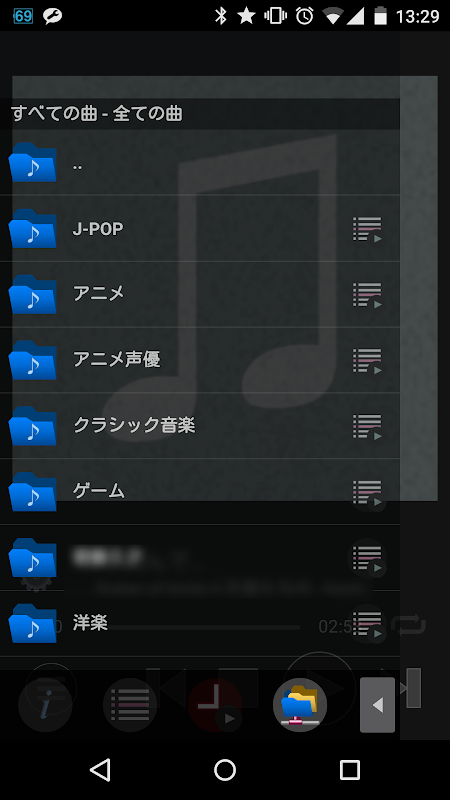 ● 端末内の音楽ファイルだけでなく、samba共有(cifs / Windowsネットワーク共有フォルダ)上の音楽ファイルも再生することができます。