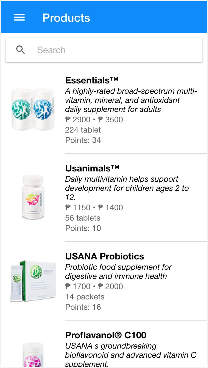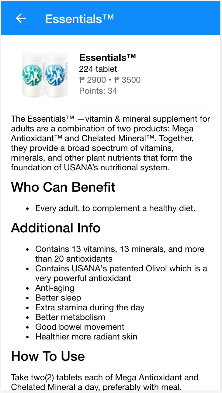 An app containing basic information about Usana PH products