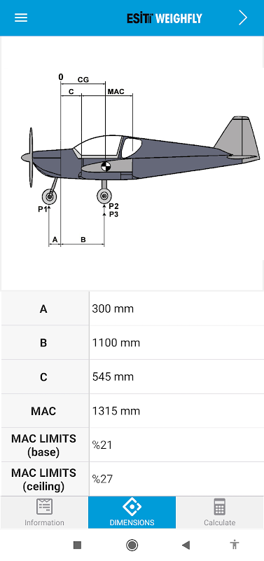 Esit Weighfly is an application designed to determine the center of gravity (CG) points of aircrafts by measuring the weights from wheels or jacks in general aviation aircrafts.