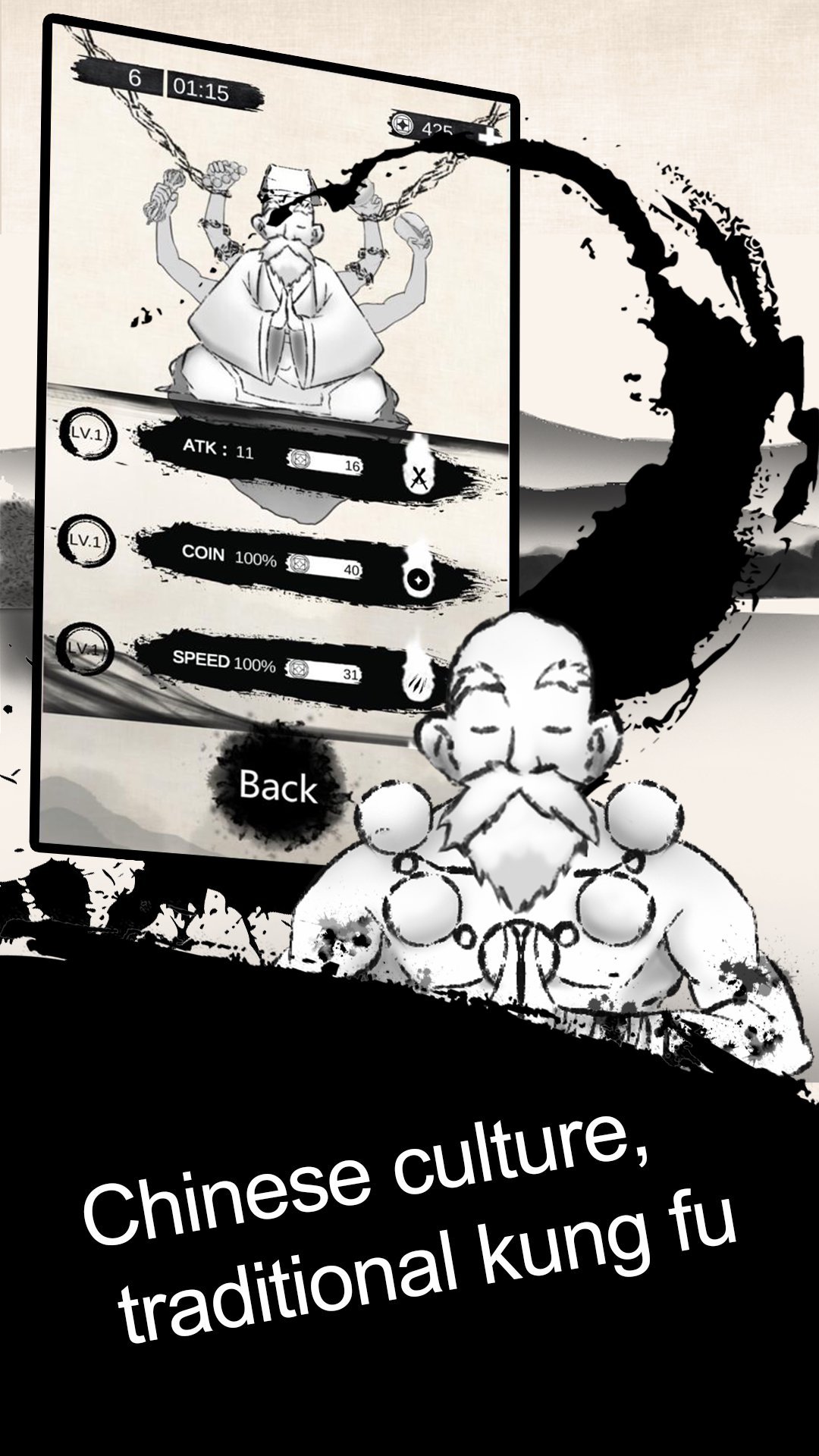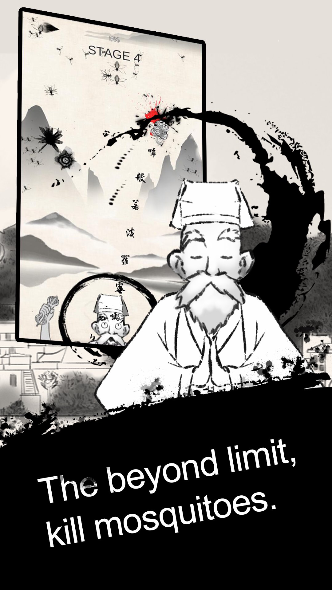 "Zen" is a relaxed, casual and ink wash painting style game. Players need to help the old monk who is practicing meditations and understanding Zen to kill the annoying mosquitoes that disturb him.