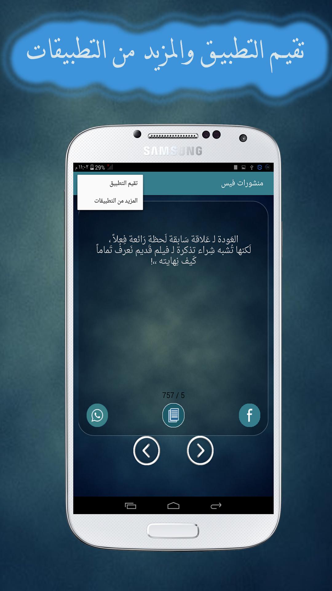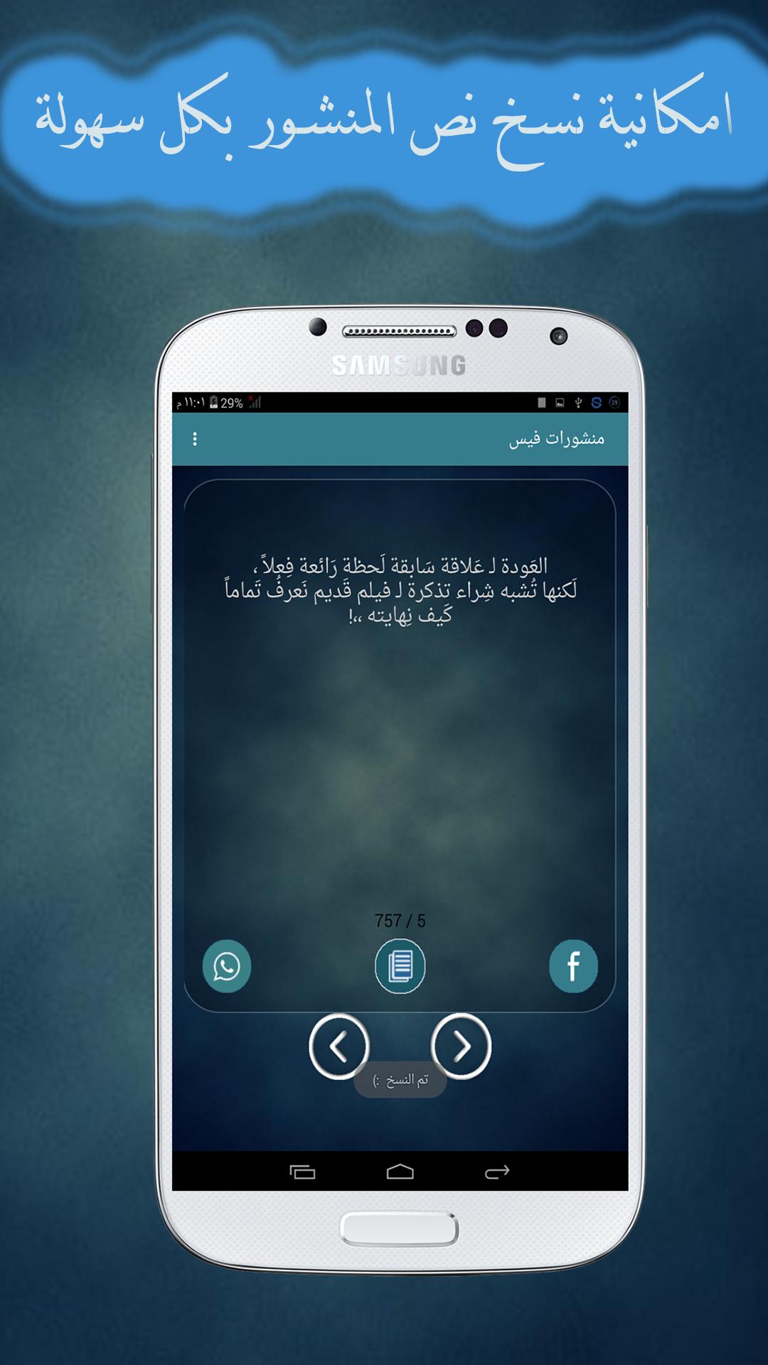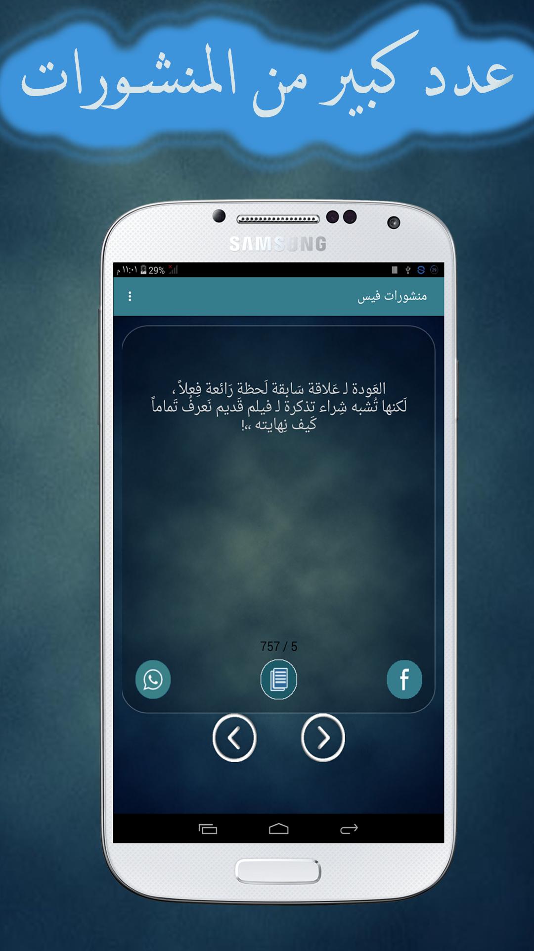 تطبيق منشورات فيس حلوه يتمتع بكل ما هو جديد من الرسائل النصية الني تساهم في نشر المحبة بين الاصدقاء من خلال تبادلها بينهم
