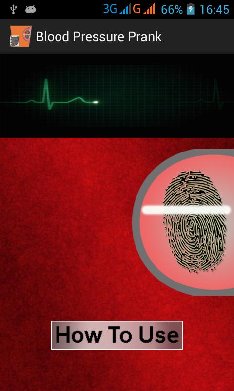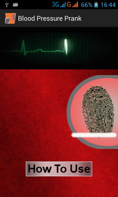 Blood Pressure Monitor Prank is an amazing prank application. If you are a prankster you would definitely love this application. Fingerprint Blood Pressure is actually a prank application which calculates your blood pressure and is made for the people who just want to play pranks on others and want to show off the power of their latest android device. It is a must have prank application still in its initial stages. It is designed in such a way that one who is not aware of android can never get whether it is a prank application or real. People would think as if it is a real Blood Pressure Calculating application.