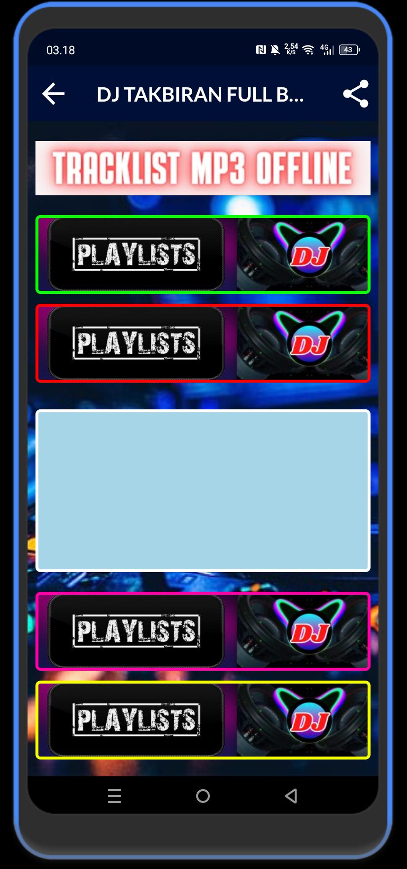 This DJ Takbiran Eid al-Fitr and Eid al-Adha 2026 MP3 offline app contains the most comprehensive collection of religious DJ remixes and melodious DJ sholawat songs, divided into four offline playlists. You can click on each playlist to find the DJ sholawat song collection and DJ Takbiran full bass remix. Then click the play button to play the latest offline religious MP3 songs from 2026.