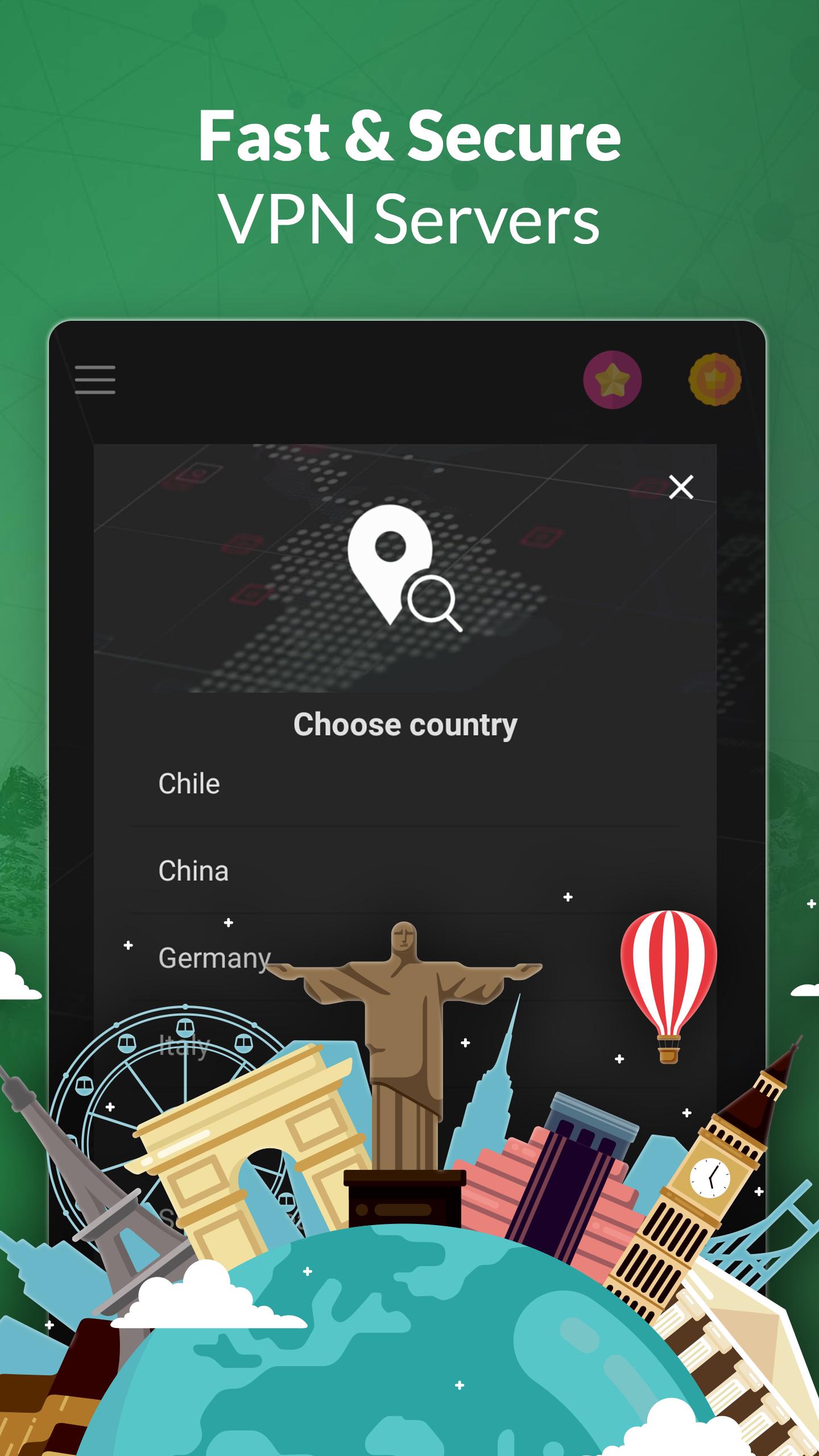 ★ One-touch connection to super-fast VPN servers, totally free.
