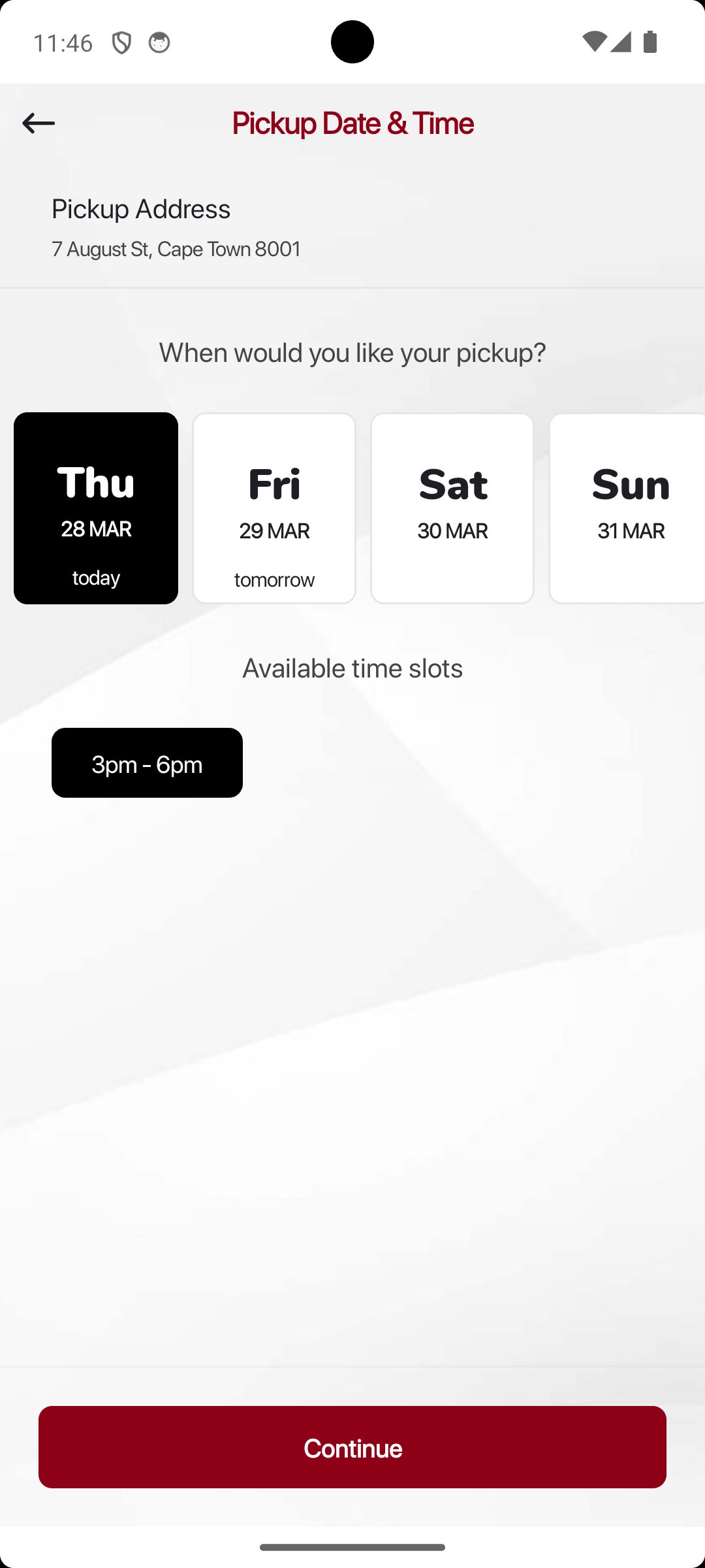 Collection & Delivery Fee: R35.00 *Prices subject to change. Only available within 5 km range of our outlets.