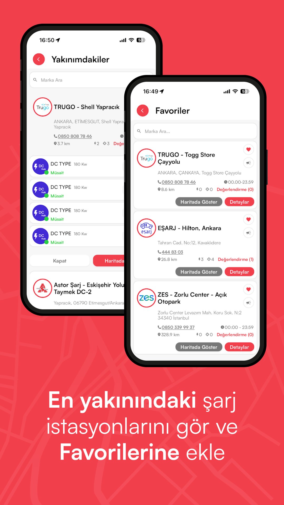 Tüm elektrikli araç şarj istasyonu noktalarını gör & şarj fiyatlarını öğren, ödeme başlat ve aracını şarj et.